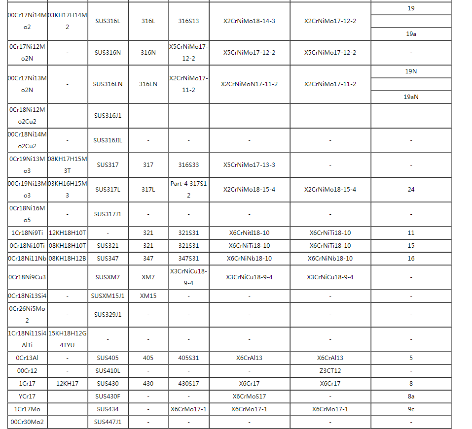 世界各國不鏽鋼標準鋼號對照表(新版)