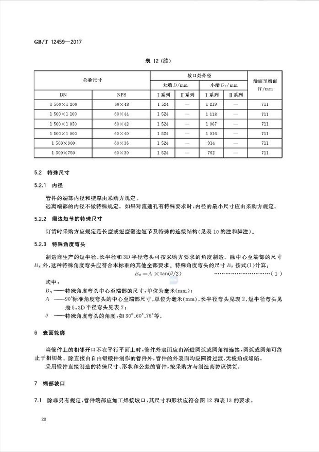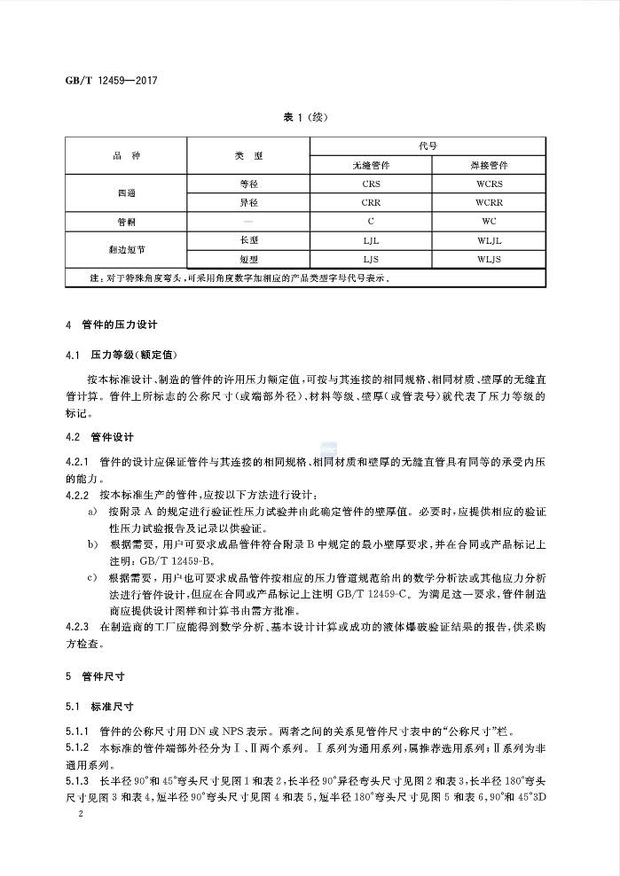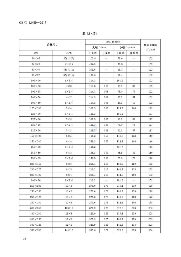 GB/T12459-2017鋼製對焊管件 類型與參數